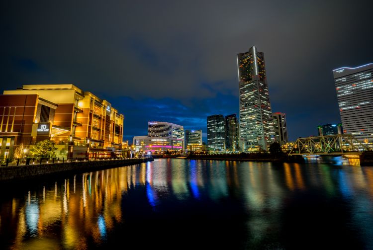 海灣周邊的多個地點都可以拍出動人的城市夜景。購物中心外,乃至杯麵博物館公園內處處是美景。