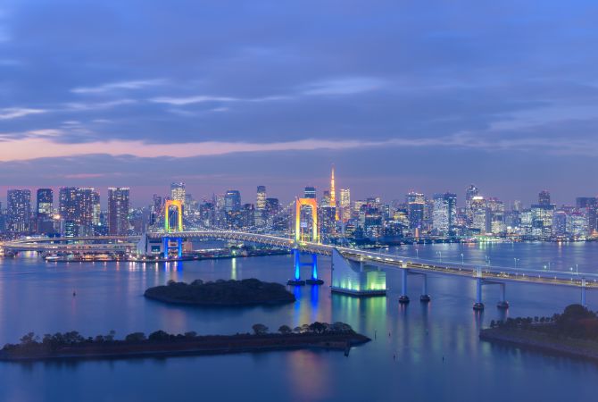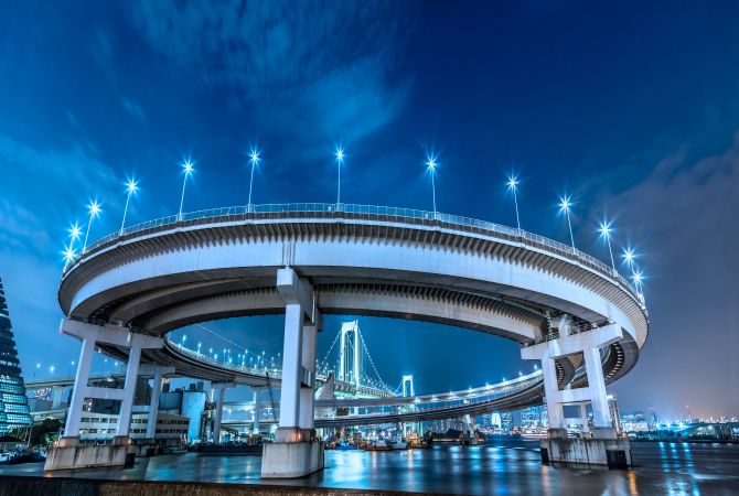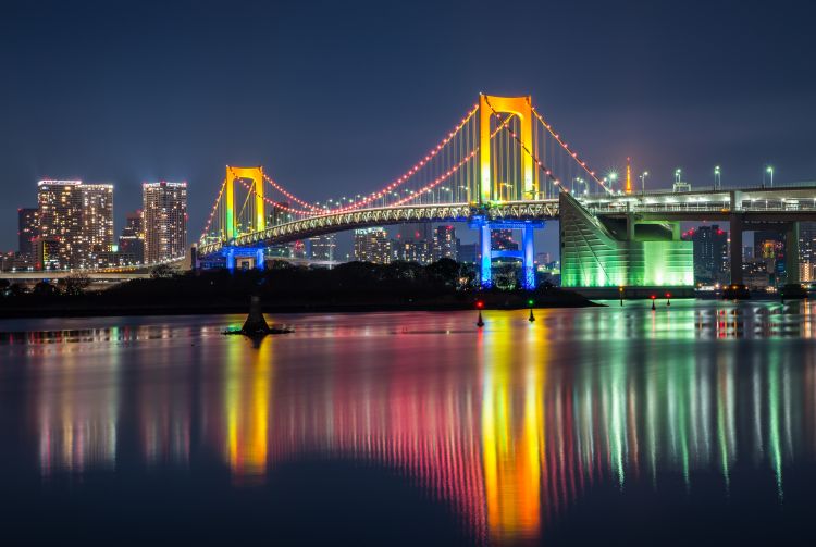 連接台場和芝浦碼頭的彩虹大橋及其璀璨的燈光秀已成為重要的旅遊景點